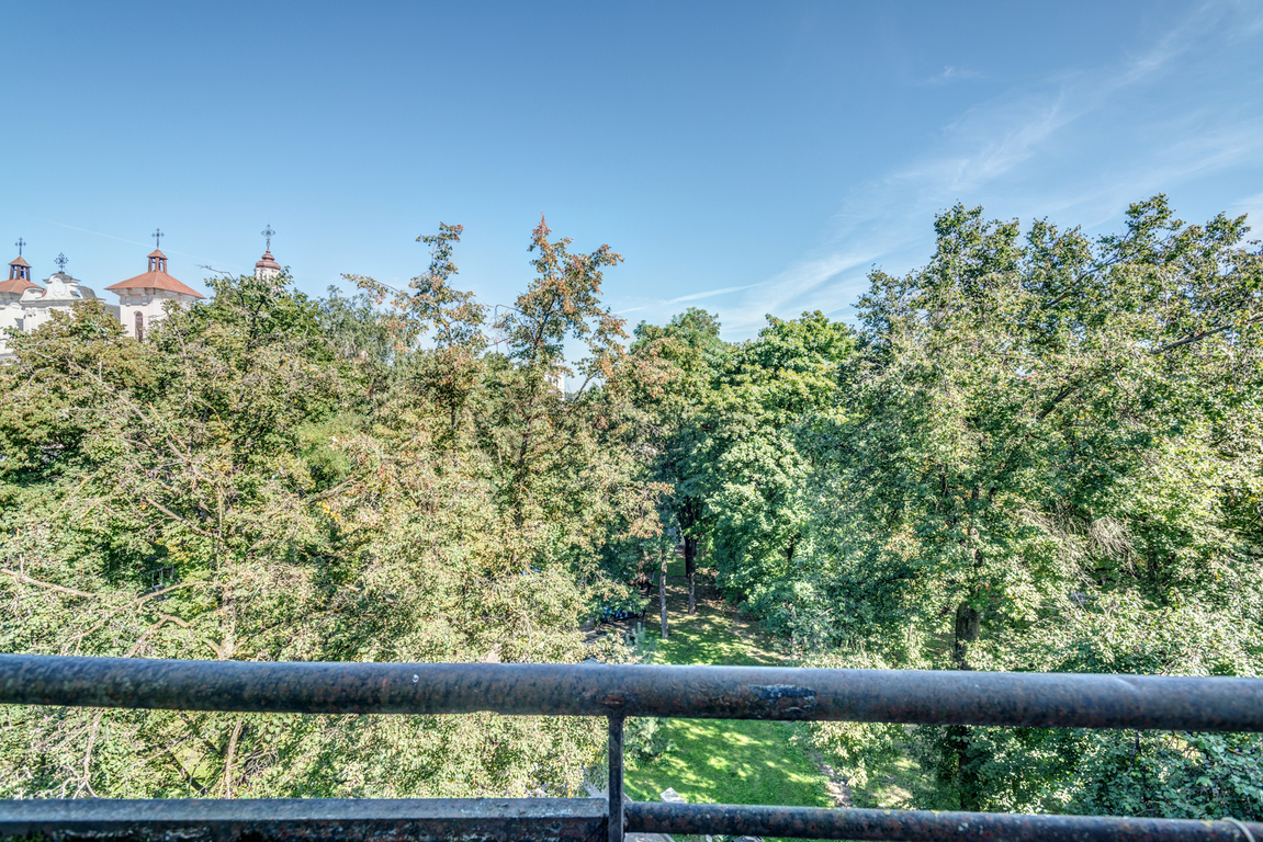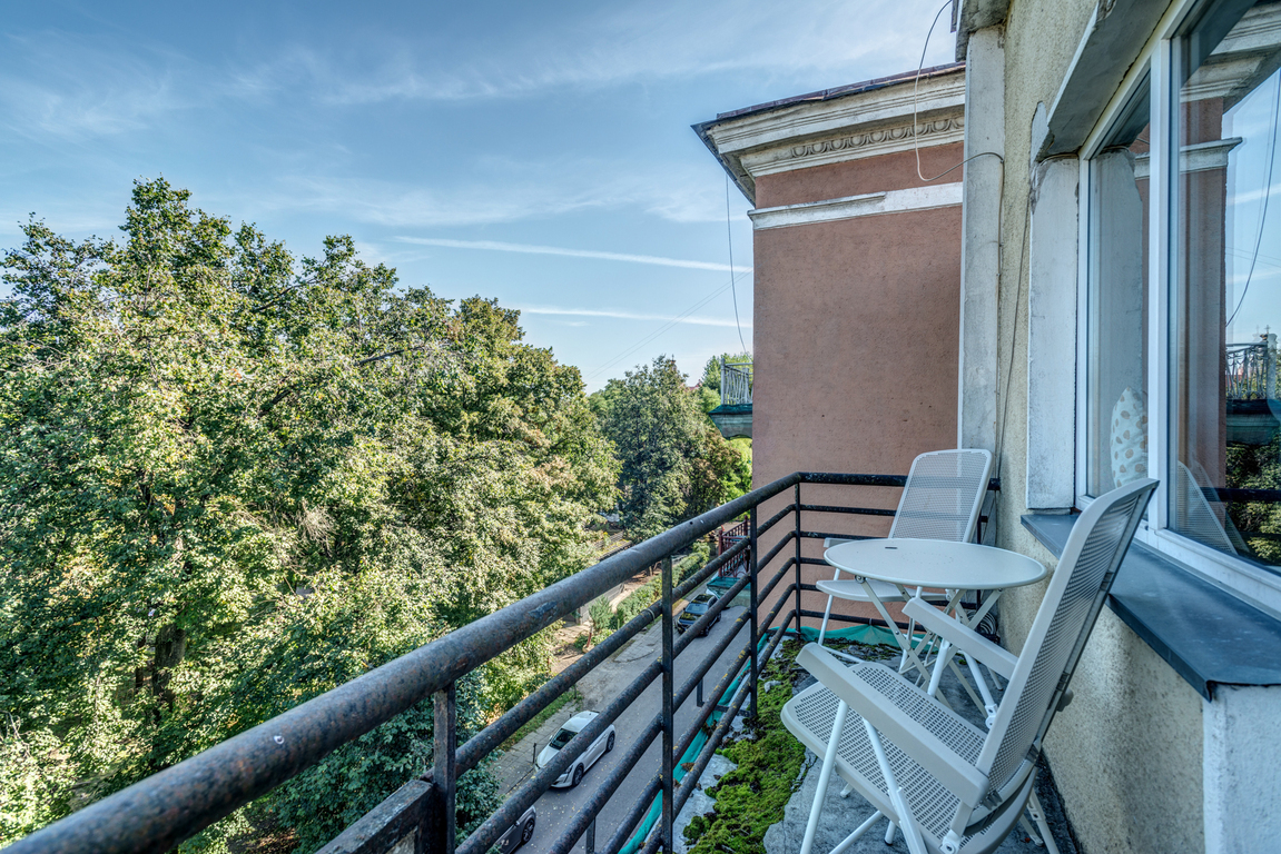 • Iš balkono atsiveria nuostabus vaizdas į žaliuojantį kiemą, o nukritus rudeniniams lapams įspūdingai matosi Šv. Dvasios bažnyčia ir dar daugiau Senamiesčio panoramos.