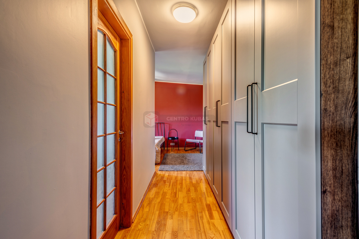 • Efektyviai išnaudojant koridoriaus erdvę įrengta didelė spinta, taip sukurta pakankamai vietos patogiam daiktų laikymui.