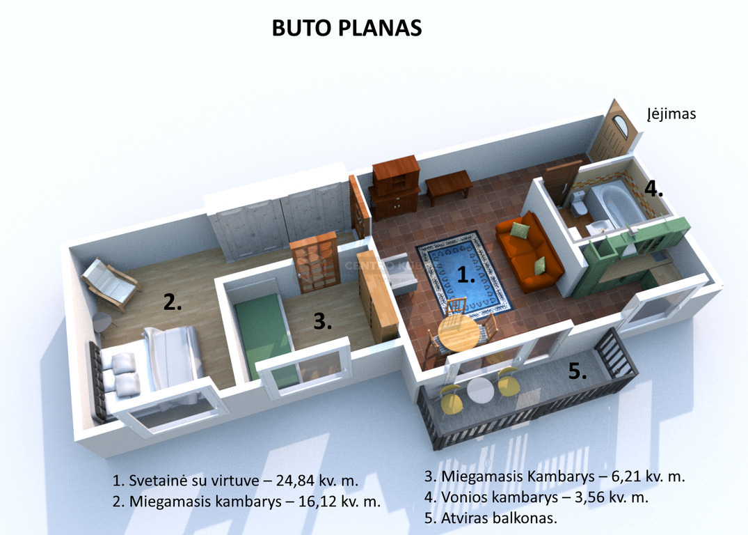 • Kambarių skaičius – 3.