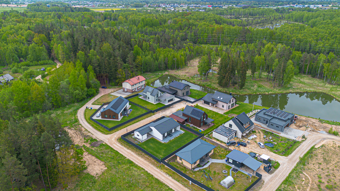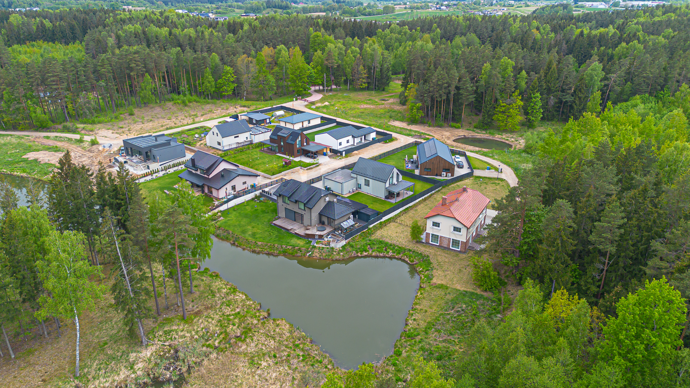 Namas, įsikūręs atokioje vietoje šalia miško ir vandens telkinio, gali tapti puikia prieglobsčio vieta visais metų laikais. Naujus namus pasiekti padės išvystyta infrastruktūra, asfaltuotos ir apšviestos pagrindinės gatvės, per kelias minutes pasiekiama viešojo transporto stotelė.