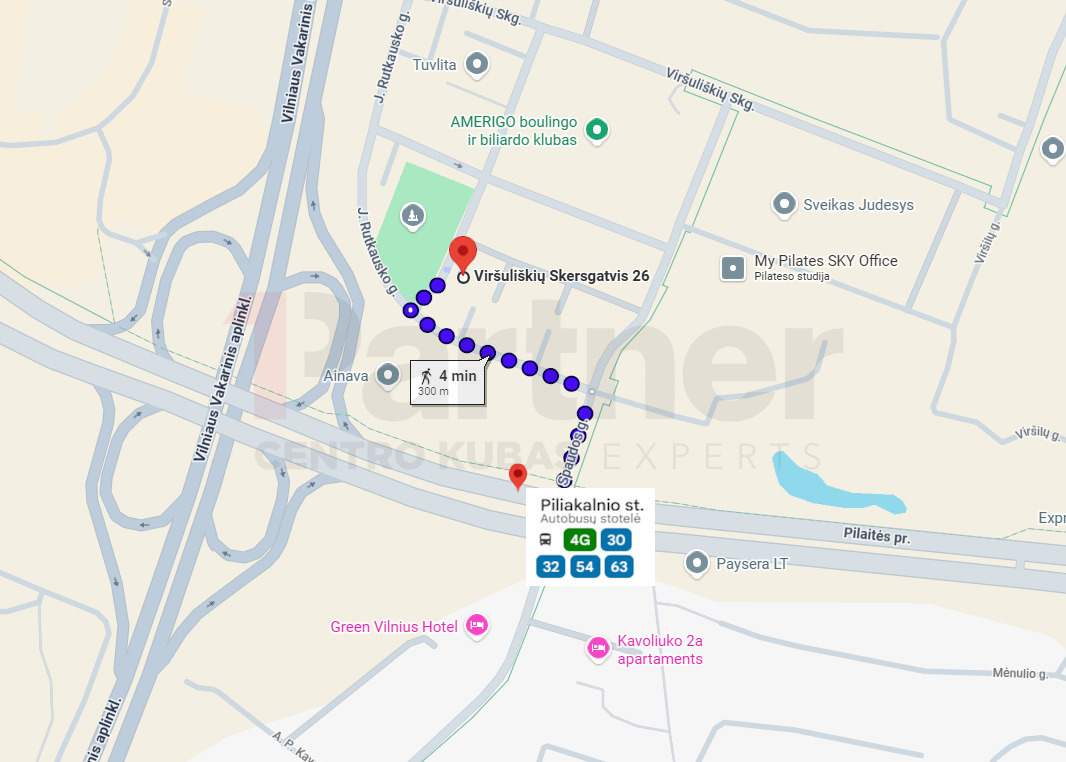 – Iki artimiausios viešojo transporto stotelės (Piliakalnio st.) ~ 0.3 km;