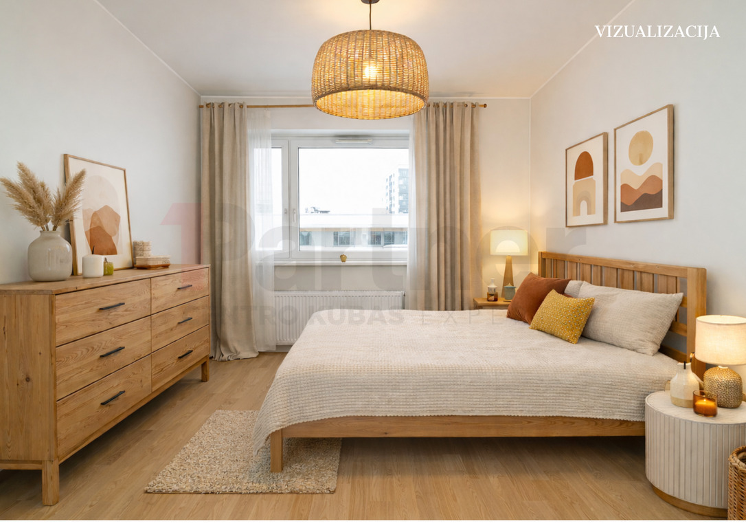 Viršuliškėse, Viršuliškių skg. parduodamas įrengtas 2 kambarių butas su dideliu dvigubu balkonu, tvarkingu erdviu 3,04 kv.m. sandėliuku po namu bei parkavimo vieta požeminėje aikštelėje.