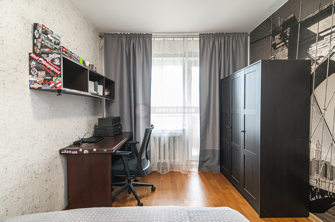 Šeškinėje, Čiobiškio g. parduodamas 3 kambarių butas su dviem balkonais ir rūsiu. Vienam kambariui reikia remonto. Bute du sandėliukai patogiam daiktų laikymui. Langai – plastikiniai, įėjimo durys – šarvuotos.