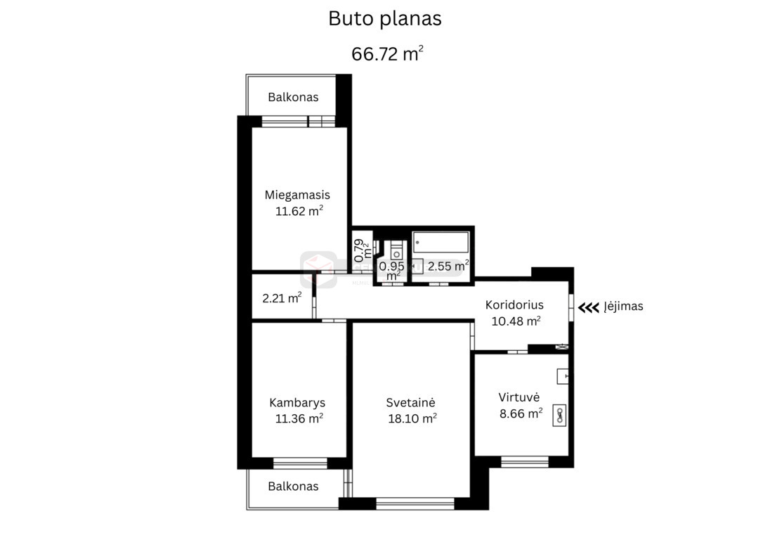 – 2 balkonai.