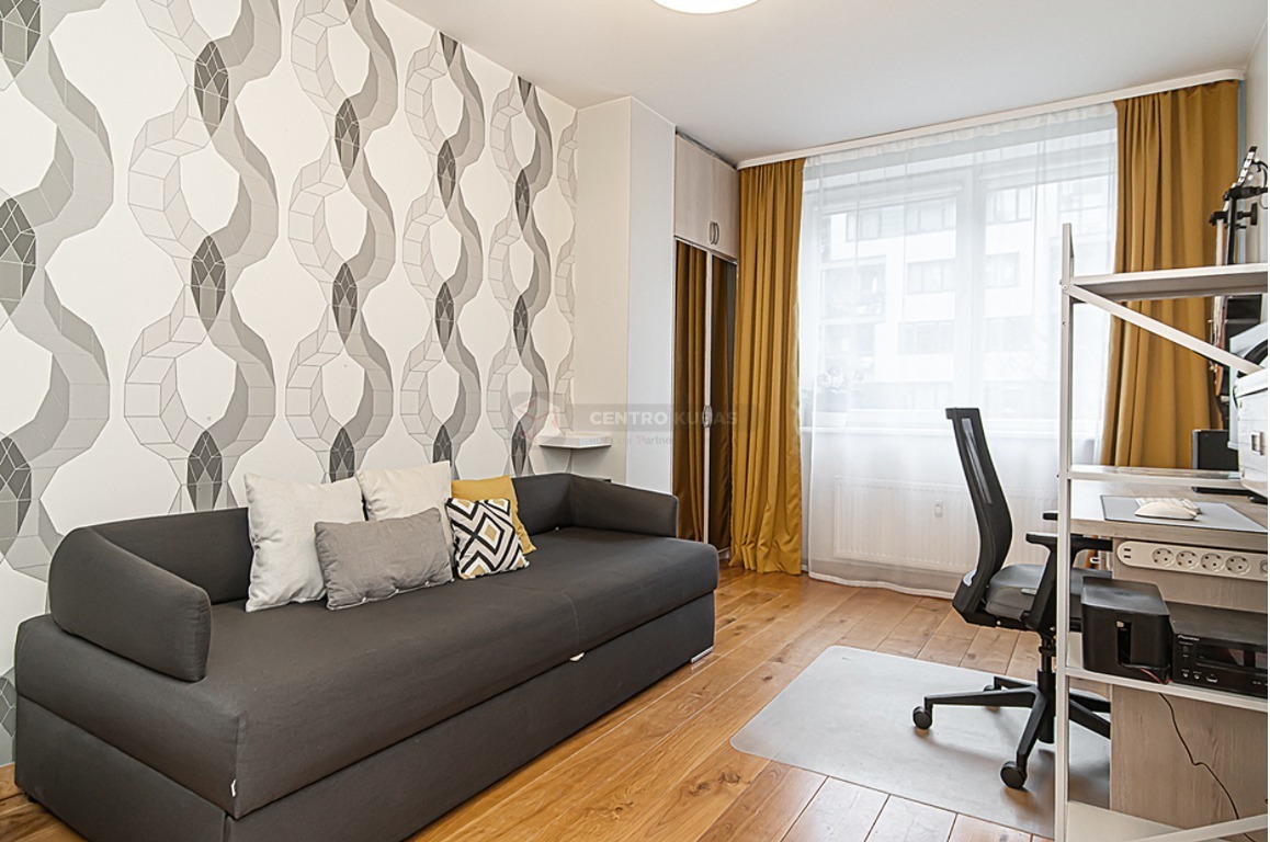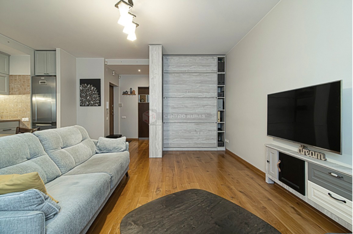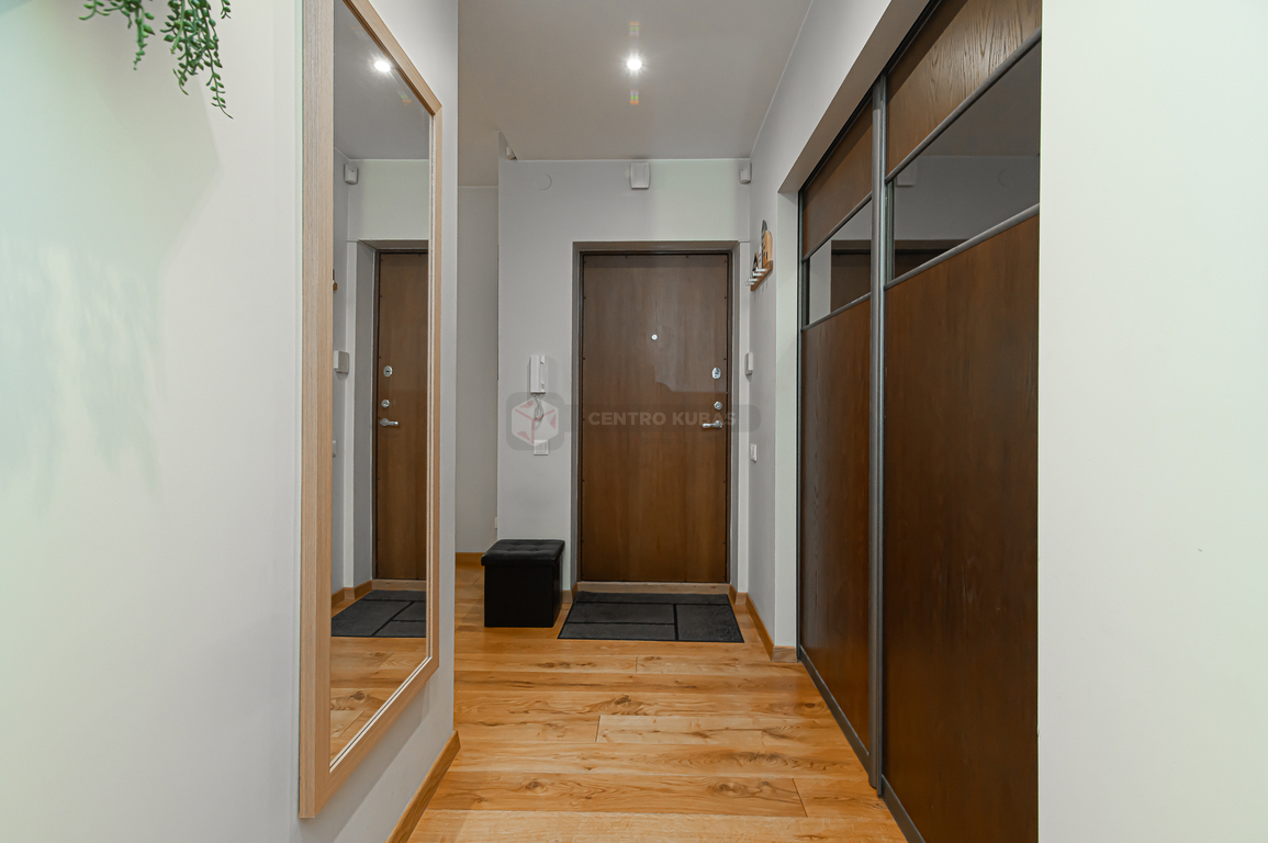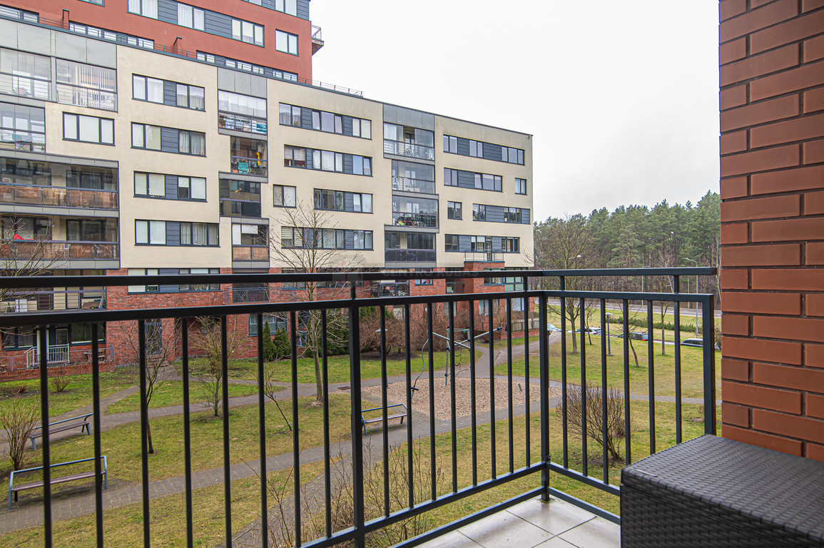 Butas šviesus ir šiltas, patogiai išplanuotas. Jame yra du atskiri kambariai. Iš jaukios svetainės-virtuvės patenkama į erdvų balkoną, iš kurio atsiveria gražus vaizdas į prižiūrimą vidinį kiemą su želdiniais.
