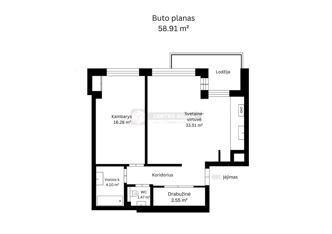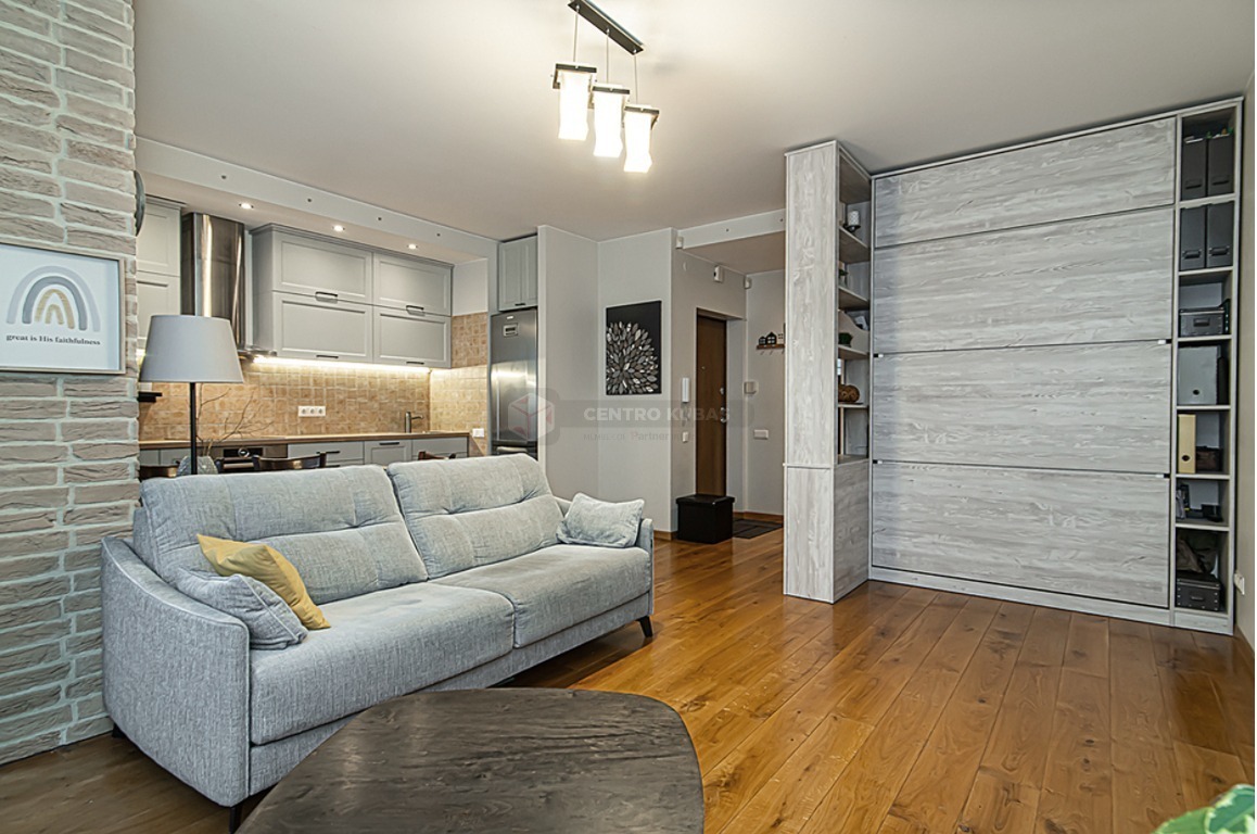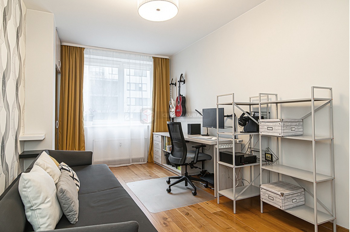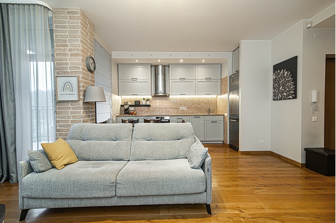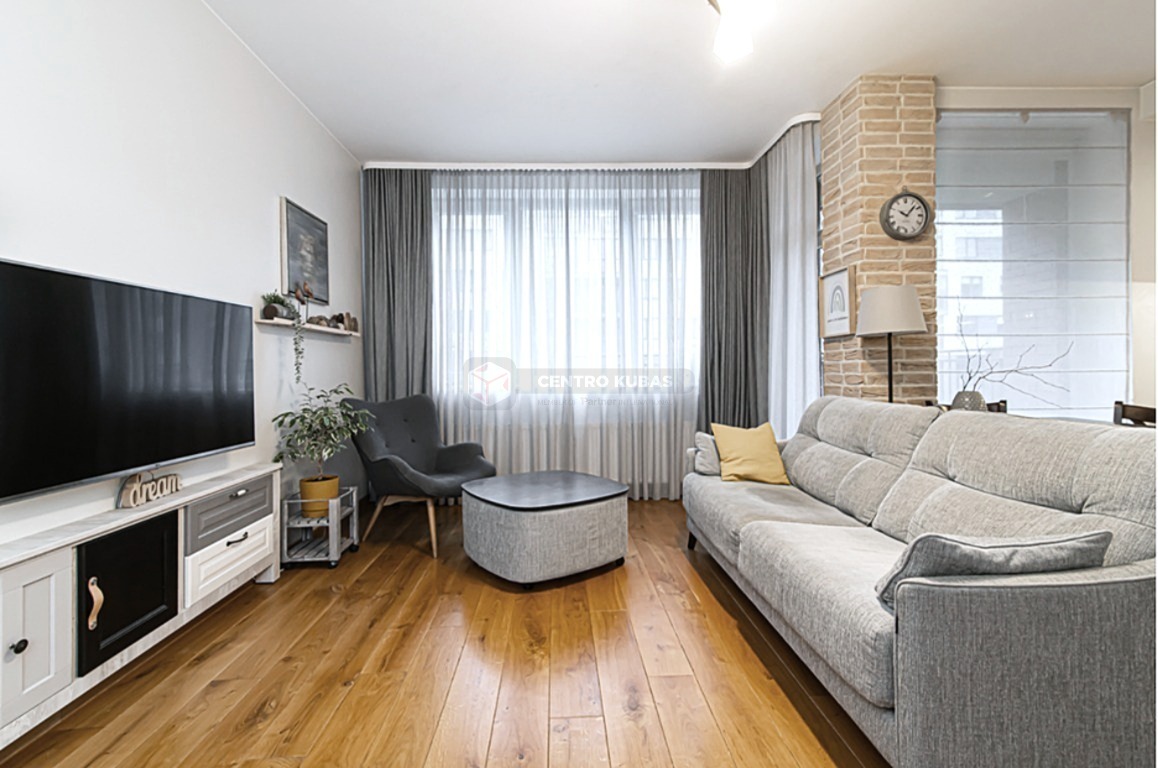 Butas šviesus ir šiltas, patogiai išplanuotas. Jame yra du atskiri kambariai. Iš jaukios svetainės-virtuvės patenkama į erdvų balkoną, iš kurio atsiveria gražus vaizdas į prižiūrimą vidinį kiemą su želdiniais.