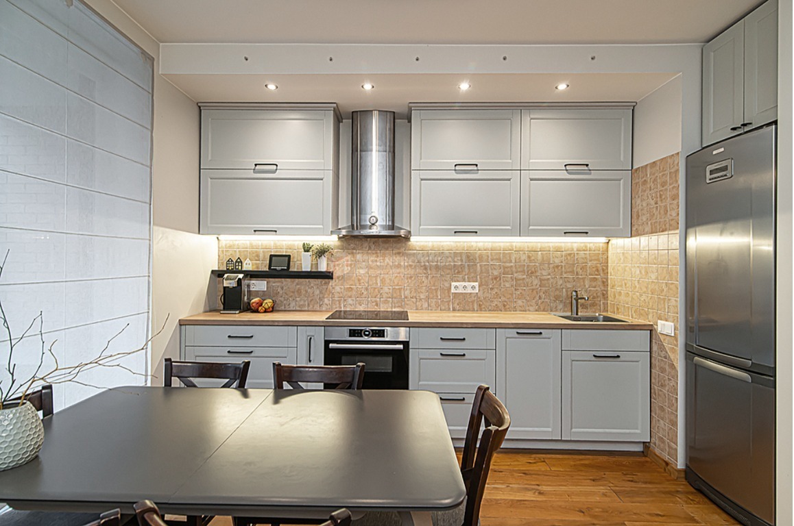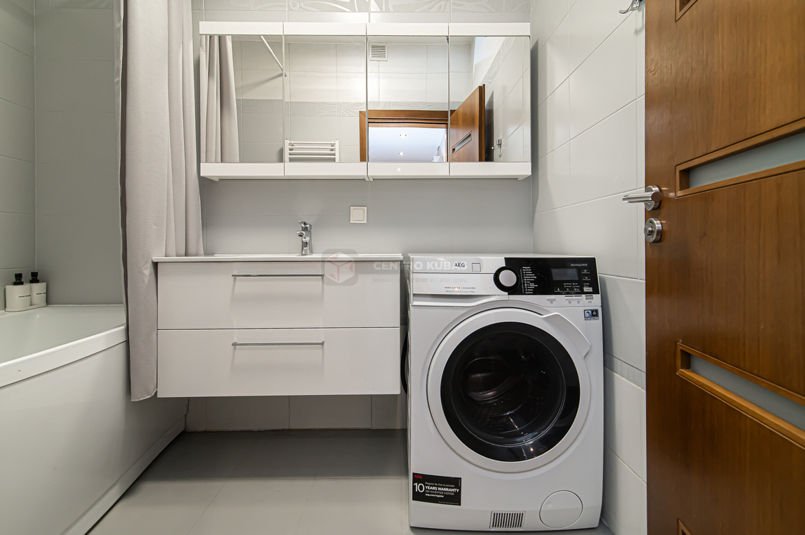 Butas parduodamas su visais baldais ir buitine technika: AEG skalbimo mašima su džiovykle, BOSCH viryklė ir orkaitė su mikrobangų krosnele, BOSCH indaplovė. Virtuvės komplekte panaudota kokybiška Blum baldų furnitūra.