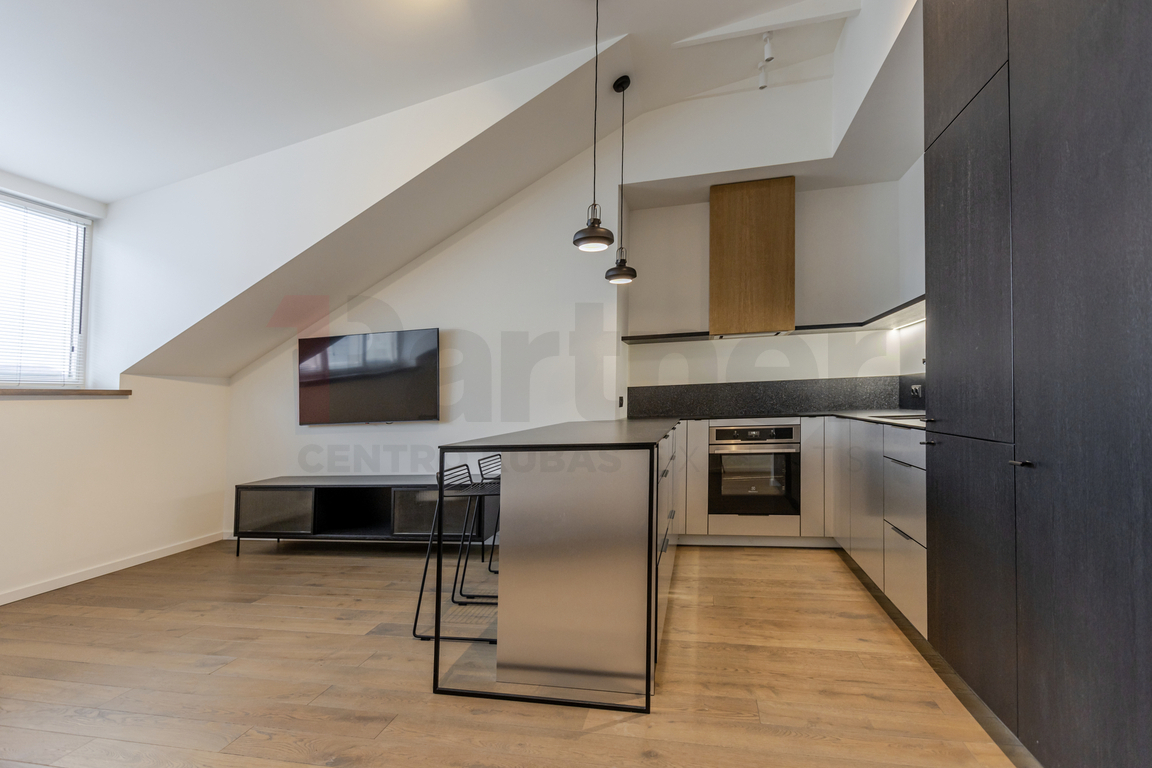• Integruoti virtuvės baldai (yra įmontuota indaplovė, indukcinė kaitlentė, gartraukis, orkaitė, šaldytuvas).