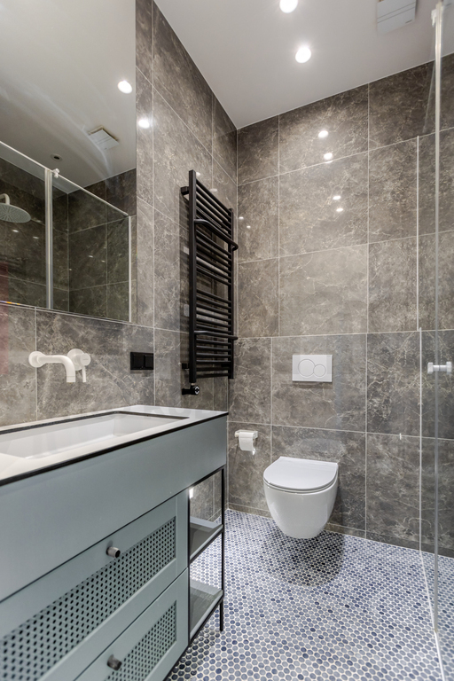 • Vonios kambaryje yra skalbyklė, elektrinė rankšluosčių džiovyklė. Įrengtas grindų šildymas.