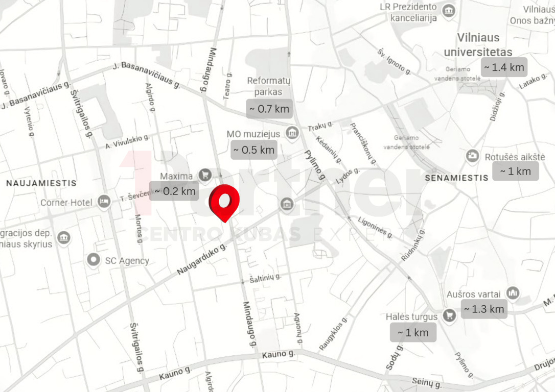 • Vos 500 m iki MO muziejaus, kiek toliau naujai atgimęs Reformatų skveras, Trakų gatvė.
