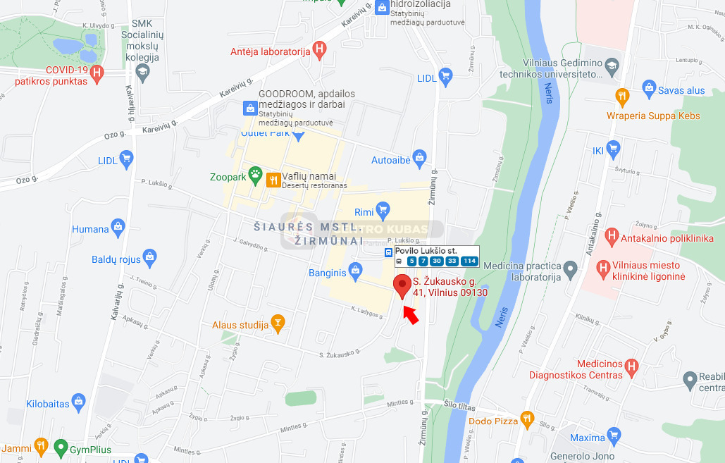 – Iki artimiausios viešojo transporto stotelės (Povilo Lukšio st.) ~ 0.13 km;