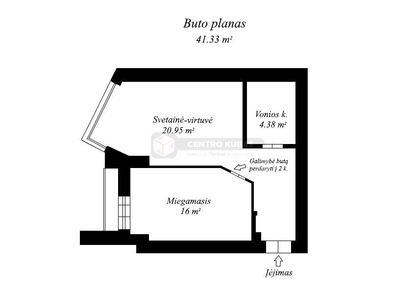 – Butą galima lengvai perdaryti į du kambarius, atskiriant miegamojo kambarį ir virtuvę-svetainę;