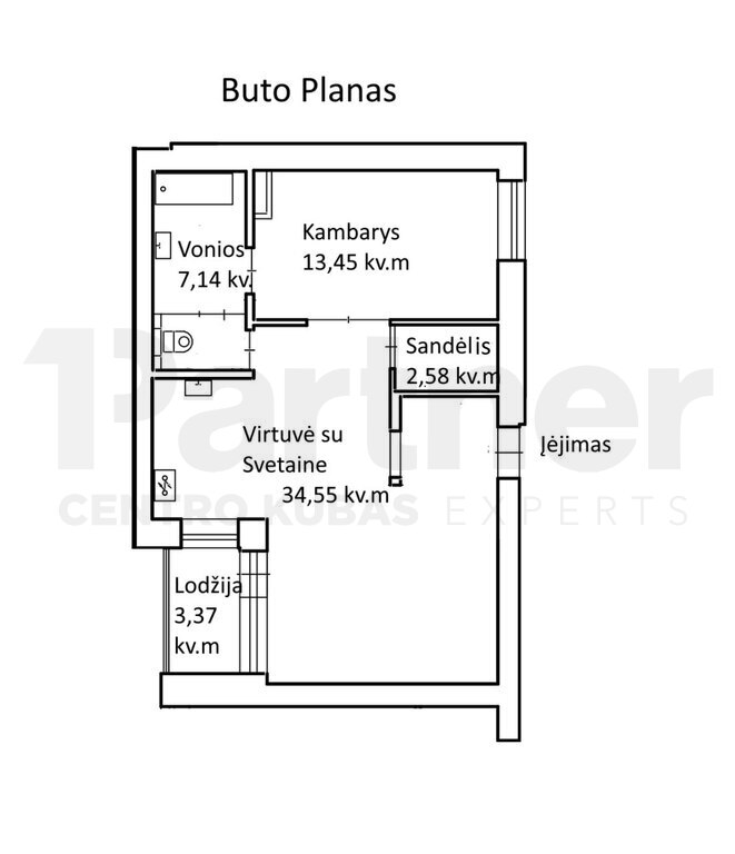• Bendras plotas: 61,09 kv.m;