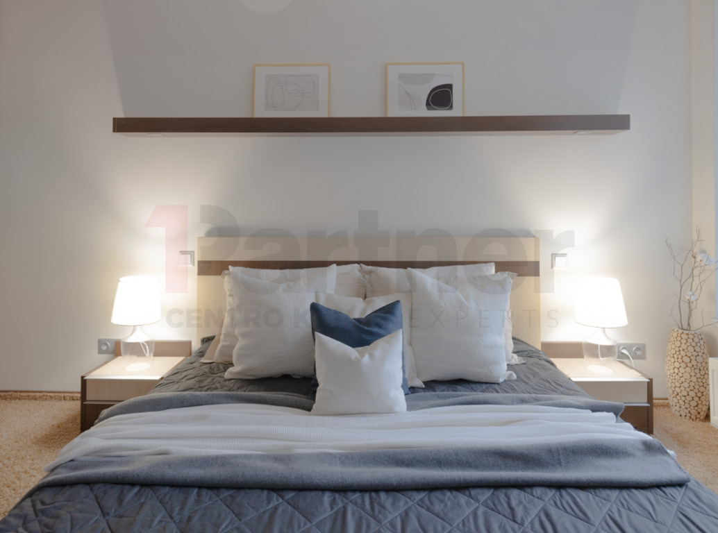 Praktiškumas ir funkcionalumas čia derinami su dviem sieninėmis spintomis: viena miegamajame ir kita koridoriuje. Papildomas sandėliukas suteikia dar daugiau saugojimo galimybių.