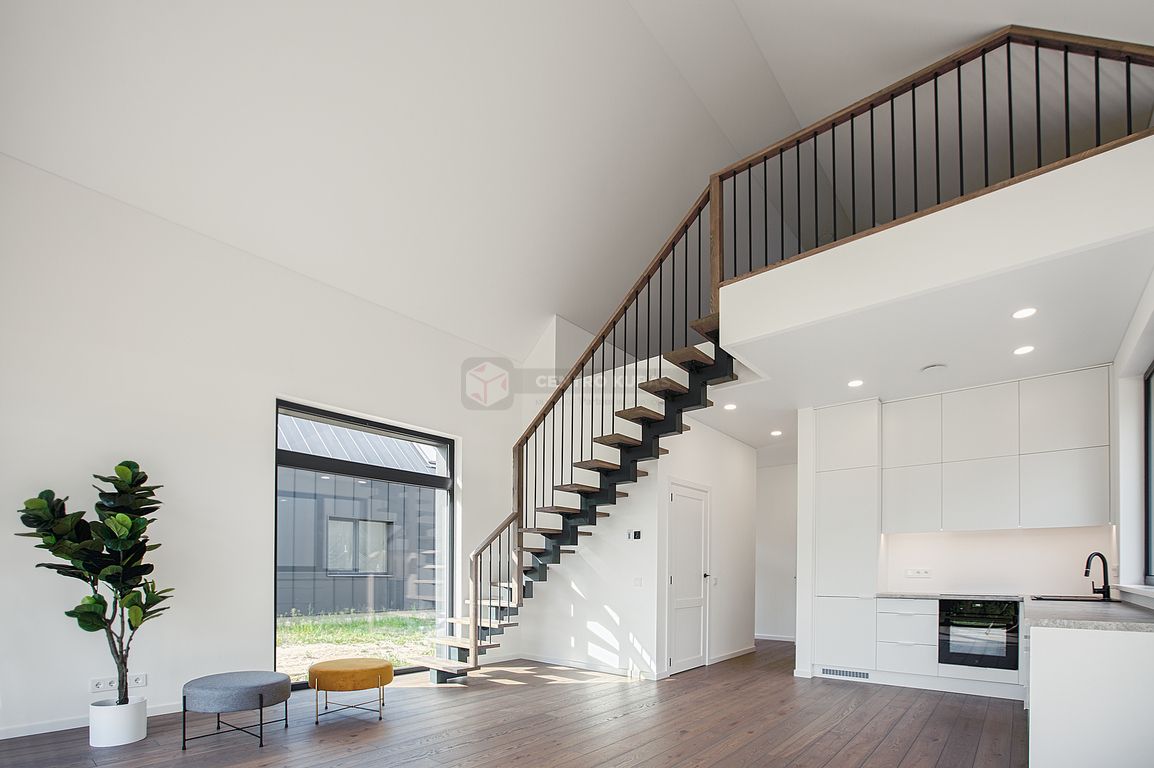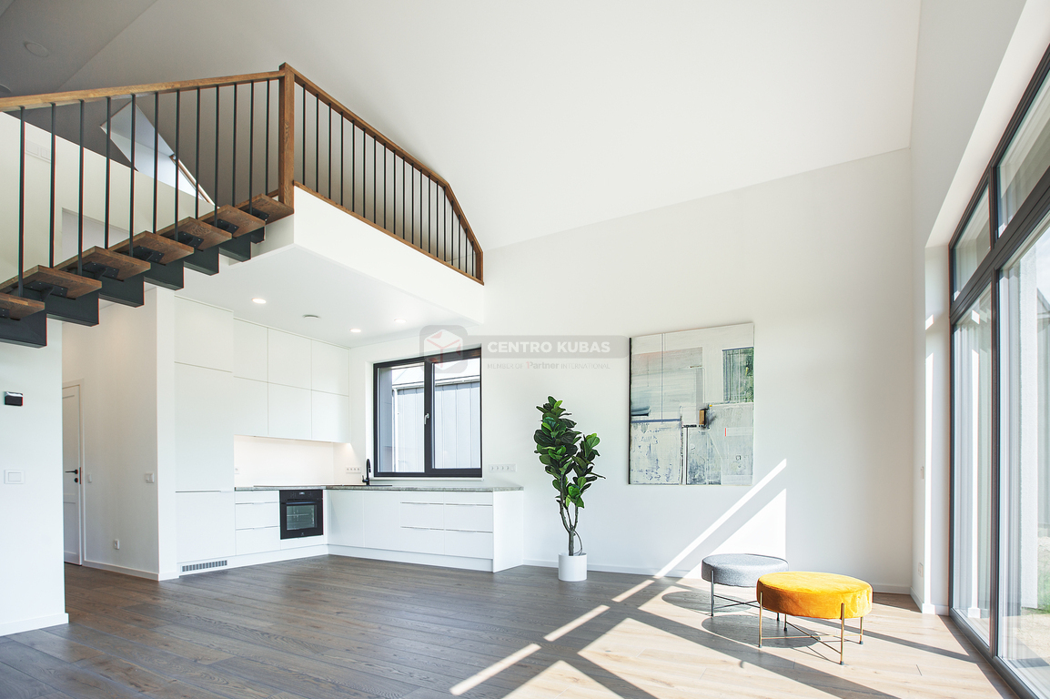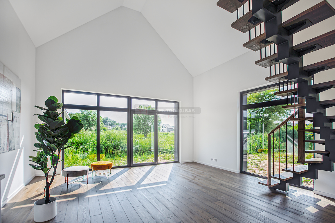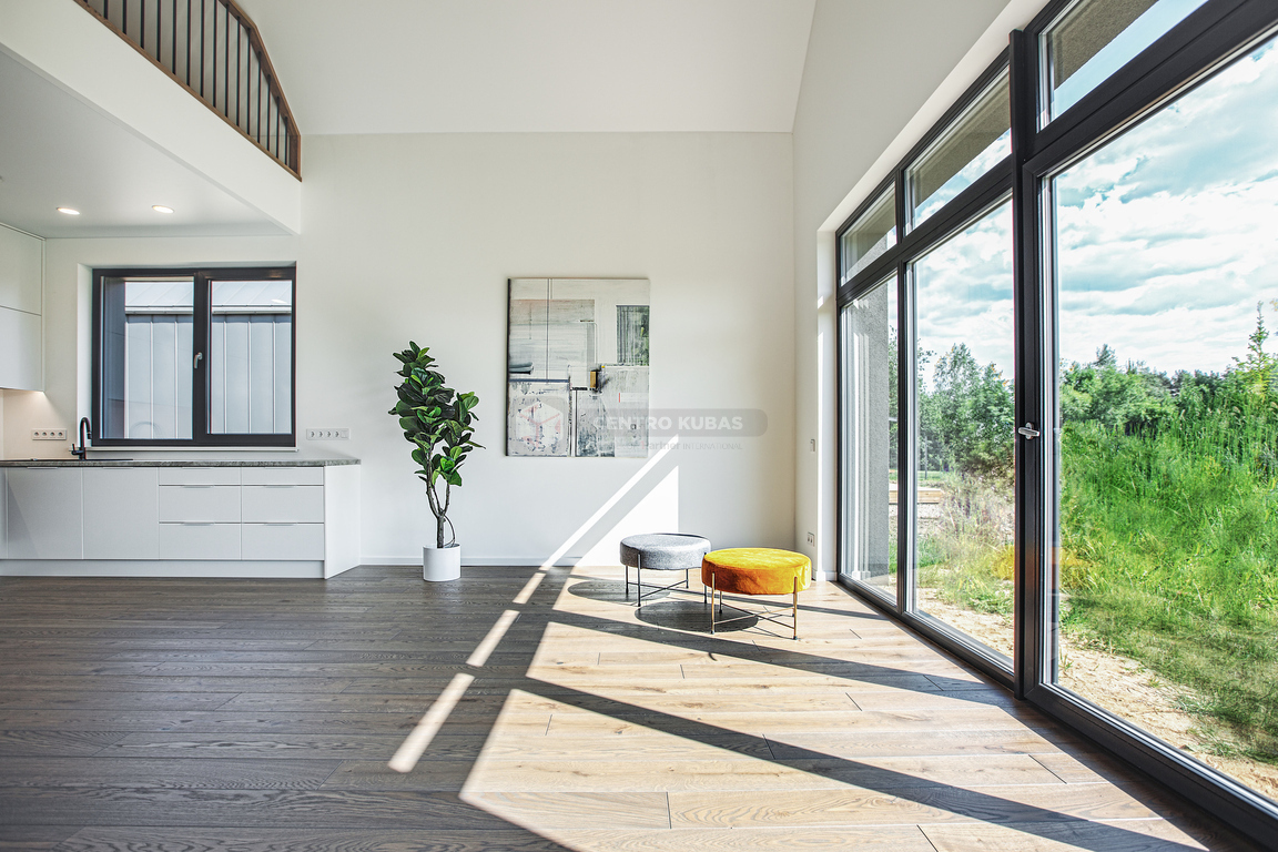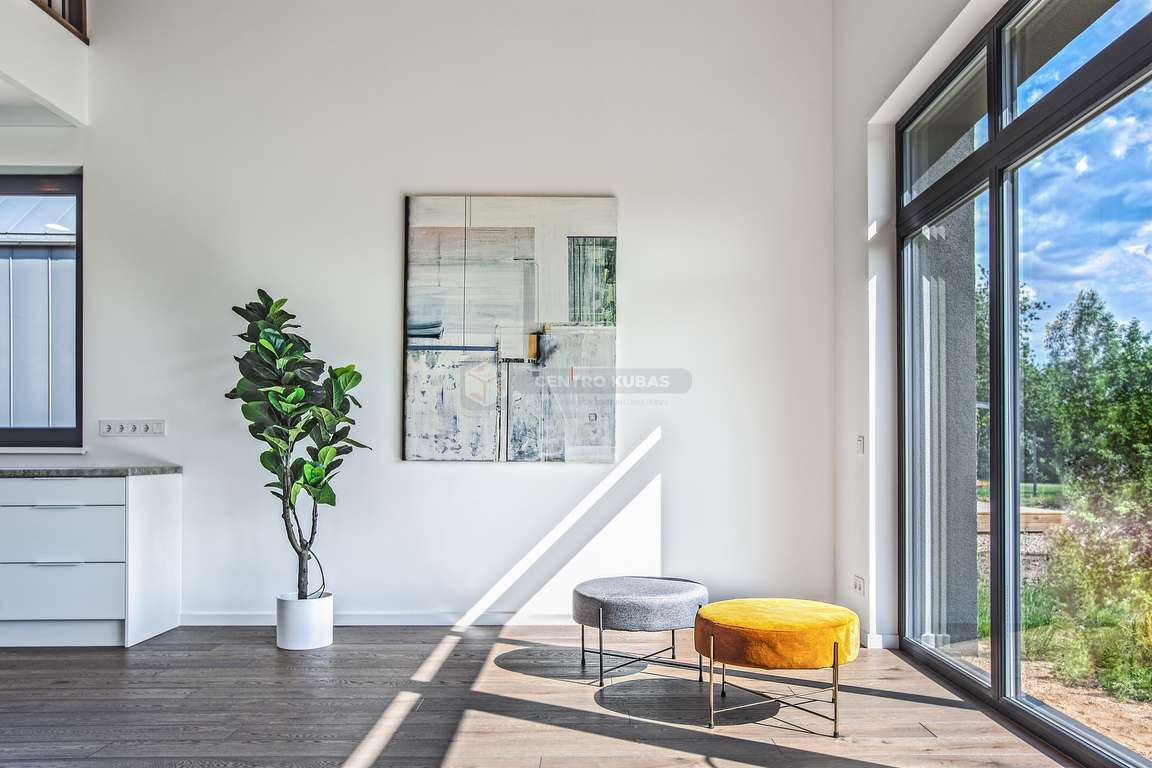Svetainėje itin aukštos 6.32 m lubos suteikia išskirtinumo bei didesnės erdvės pojūtį, o pro didelius vitrininius langus patenka daug natūralios šviesos ir šilumos. Svetainės langai ir terasa orientuoti į pietvakarių pusę.