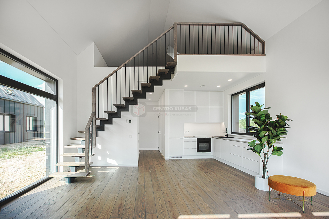 Baltadvario g. parduodamas pilnai įrengtas namas naujų gyvenamųjų namų kvartale. Ypatinga dovana Jums – specialiai šio namo interjerui, profesionalaus dailininko sukurtas paveikslas pavadinimu „Harmony“, harmoningam ir jaukiam Jūsų gyvenimui. Namas stilingas, minimalistinės architektūros, vieno aukšto su pastoge. Puikiai suplanuotas – pirmame aukšte erdvi svetainė-virtuvė su integruota AEG- Electrolux buitine technika, du kambariai, vonios kambarys su kokybiškomis akmens masės plytelėmis bei santechnika, katilinė.