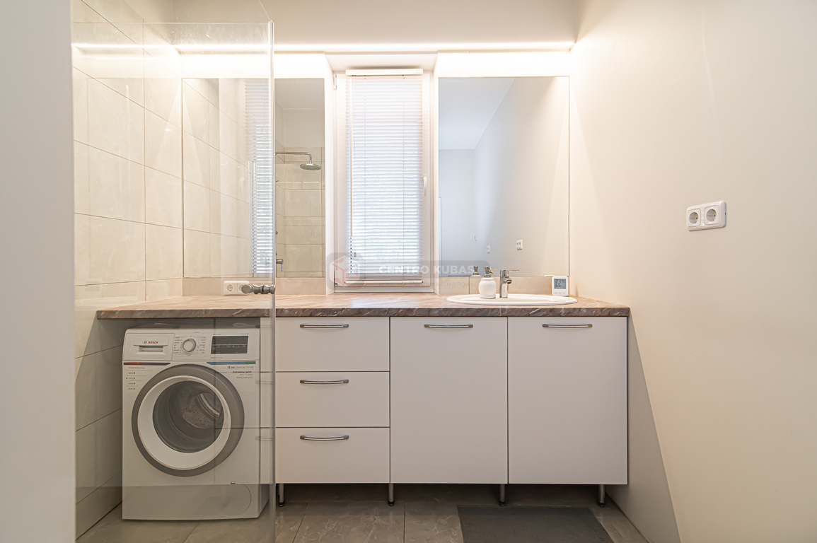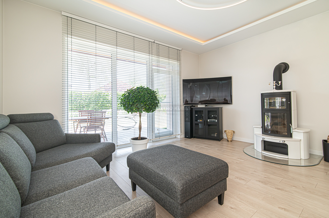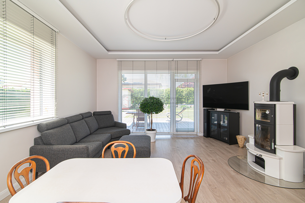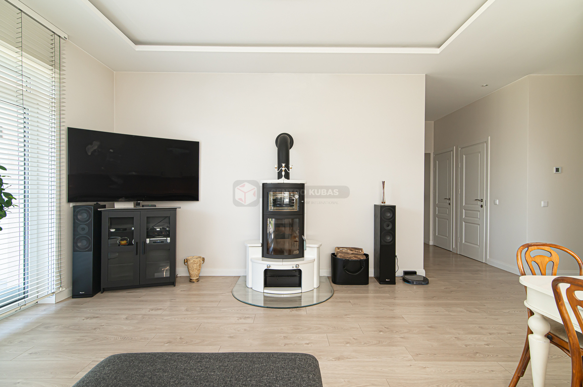 – Šildymas – dujinis katilas „Viessmann“. Grindinis šildymas, kiekvienai patalpai įregti automatiniai šilumos reguliatoriai;