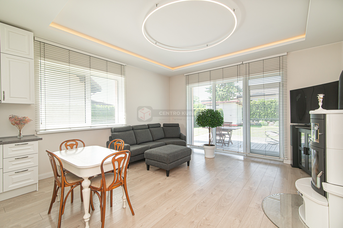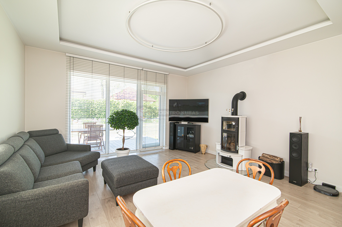 Galgiuose, Eglių g. parduodamas pilnai įrengtas namas naujų gyvenamųjų namų kvartale. Vieno aukšto, patogiai suplanuotas – erdvi svetainė-virtuvė, trys kambariai, vonios kambarys, atskiras wc, 21.81 kv.m garažas su automatiniais įvažiavimo vartais bei katilinė. Name vyrauja šviesios, žemiškos spalvos. Svetainėje yra jaukumo suteikiantis židinys. Namas ekonomiškas – itin mažos išlaikymo sąnaudos (2024 m. sausio mėn. šildymas + karštas vanduo – 100 eurų, vasario mėn. – šildymas + karštas vanduo – 60 eurų).