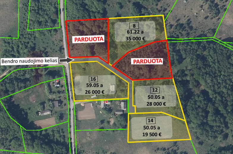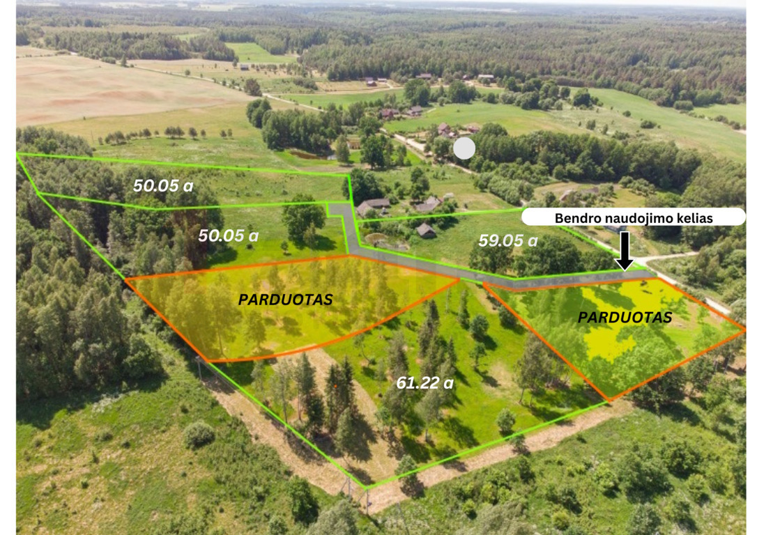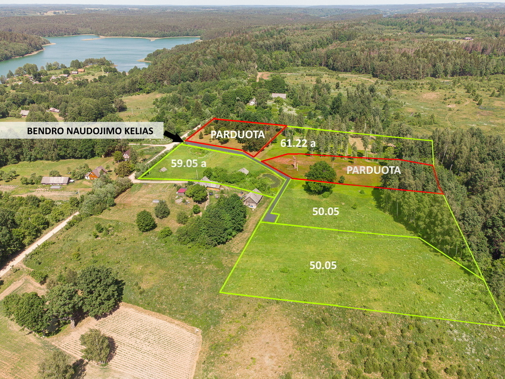– Sklypų plotai – 50.05 a, 59.05 a, 61.22 a;
