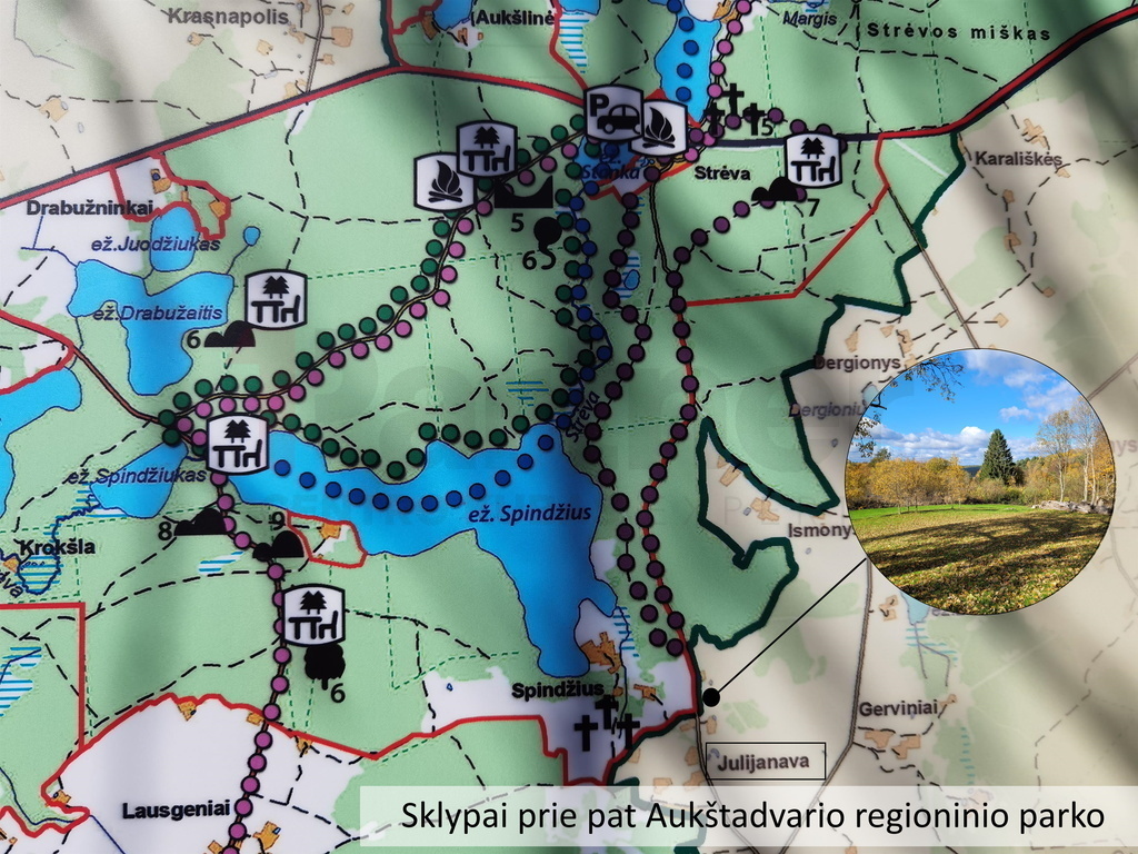 Puiki vieta poilsiui, ar nuolatiniam gyvenimui gamtos apsuptyje, prie pat Aukštadvario regioninio parko (sklypai nepatenka į parko teritoriją, statyboms apribojimų nėra), miškingoje ir ežeringoje vietovėje. Priėjimas prie Spindžiaus ežero pakrantės vos už 900 metrų. Aplink gausu pėsčiųjų, dviračių ir vandens turizmo trasų, gražios vietos pasivaikščiojimams ir aktyviam laisvalaikiui.